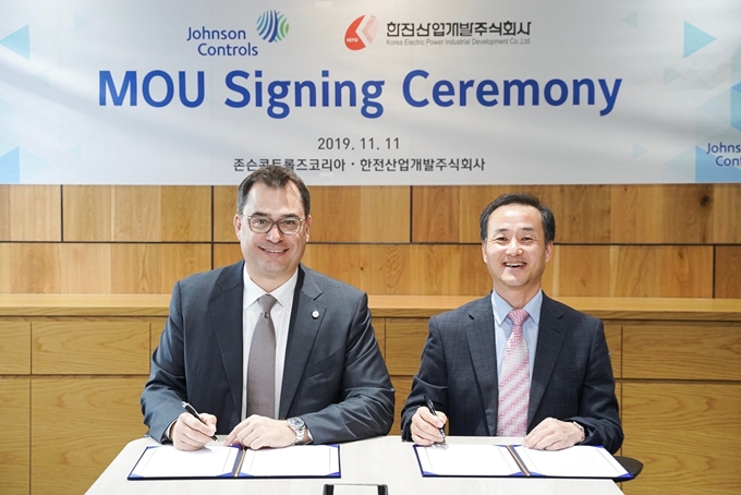 ▲USG 스캇 오랜티아 존슨콘트롤즈 코리아 전무(좌측), 황정권 한전산업개발 신성장사업처 처장(우측)