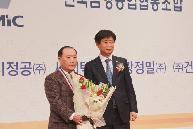 ▲올해의 금형인으로 선정된 미크론정공 이정우 사장(좌), 금형조합 박순황 이사장(우)
