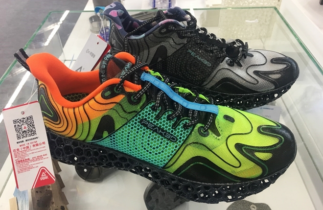 ▲언더아머 사의 신발 사진 및 중국산 프린터와 소재로 제작된 신발 사진