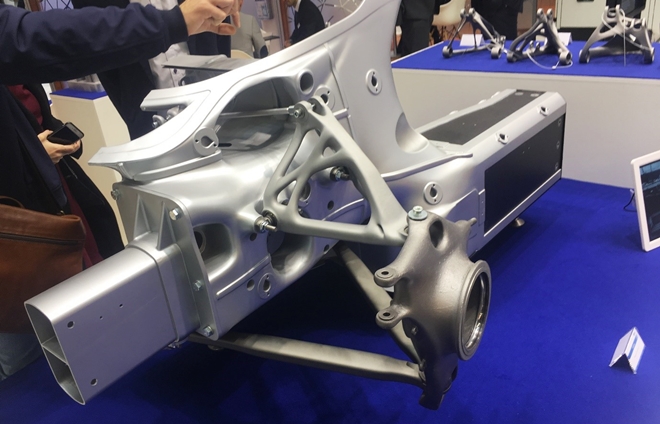 SLM 사의 경우, 다이버전트 사와 더불어 자동차 생산용 대형 부품이 다수 전시돼 대형 알루미늄 제조에 활용되는 적층제조 기술을 엿볼 수 있었다.