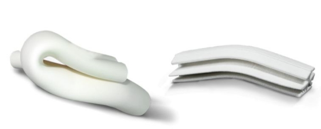 범용적으로 활용이 가능한 ‘DuraForm TPU’ 탄성소재는 고무와 유사한 탄성 소재로서 평균 이상의 내구성과 인열 저항성이 양호한 열가소성 레진이다. 이 소재는 고무와 유사한 속성을 지닌 기능성 원형 제작이 가능해 개스킷, 호스, 실 등으로 활용된다.