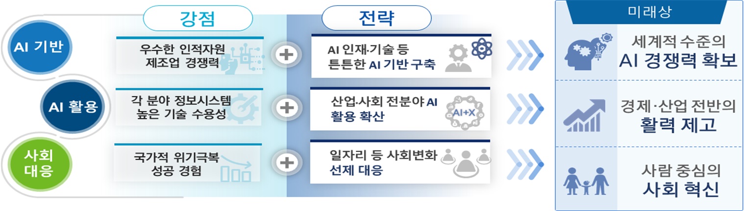 또 국민들의 높은 교육 수준과 최신 기술 수용성, 세계 최고의 ICT 인프라, 반도체·제조기술 등 우리의 강점을 극대화할 수 있는 전략 수립에 중점을 뒀다.