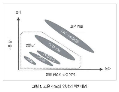 새로운 강종인 DAC-i는 기존 범용강 DAC®(JIS SKD61 상당)과 비료해 고온 강도와 인성의 양쪽을 높인 위치매김을 지향했다. 그림 1에 고온 강도와 인성의 위치매김을 나타냈다. DAC-i는 DAC와 비교해 고온 강도와 인성을 높인 위치매김에 있다.