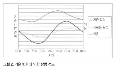 기계 본체의 주요 구조물인 칼럼은 고강성, 그리고 환경 온도 변화에 대해서도 안정된 정도 유지가 요구된다. 환경 온도 변화에 의한 칼럼의 기울기가 공구 날끝 위치 정도에 크게 영향을 미치기 때문에 기존 동사에서는 칼럼 내에 열대칭 부재를 설정, 환경 온도 변화에 의한 칼럼의 기울기를 억제하고 있다.