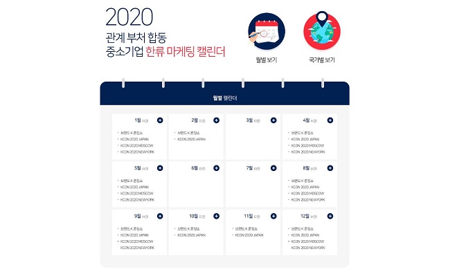 한류 캘린더는 K콘텐츠, K뷰티, K푸드 등 한류를 활용한 중소기업 해외마케팅 사업을 추진하고 있는 6개 부처의 한류 행사 정보를 한눈에 찾아보기 쉽게 온라인 캘린더 형태로 제작한 것이다.