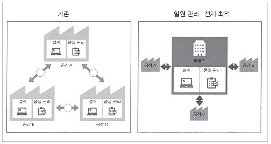 생산은 글로벌화되고 있다. 일본 기업의 제조업은 전 세계에서 제조를 하고 있는데, 관리는 그 공장에 맡기고 있는 케이스가 많다. 각 공장에서 불량이 발생해도 상황이나 원인을 즉시 파악할 수 없어 선수를 빼앗기는 일이 자주 있다. 일본 공장이라면 당연히 문제없는 것도 해외 공장에서는 문화 차이 때문에 건전한 운영이 이루어지지 않고, 납기 지연이 개선되지 않거나 돌발 불량이 빈번하게 일어나는 경우가 있다. 생산 관리 체제, 품질 관리 체제의 ‘가시화’를 비롯해 글로벌 생산을 관리하기 위한 매니지먼트 방법의 표준화가 급선무이다.