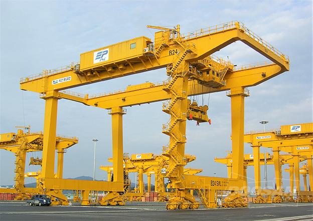 ▲ 두산중공업이 2006년 부산신항 1-1단계에 공급한 트랜스퍼 크레인