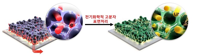 본 연구의 핵심적인 방법은 배터리 셀 조립 시 전해질에 전도성고분자(폴리아닐린, Polyaniline)의 단량체인 아닐린(aniline)을 소량 첨가하여 전기화학적으로 전류를 가해 전극 활성 물질 표면에 중합시키는 방법인 ‘전기화학적 고분자 표면처리법’이다. 이 기술은 본 연구팀이 전 세계적으로 유일하게 자체 개발한 기술로 복잡한 추가 공정이 필요하지 않아 상용화가 매우 용이하며, 현재 특허 출원 중이다.