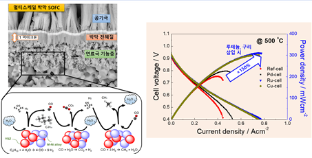 이에 따라 전 세계적으로 작동온도를 낮추면서도 성능의 손실이 없는 박막기반 세라믹 연료전지에 대한 연구가 활발히 이어졌다. 문제는 작동온도를 낮추면 다양한 연료를 사용할 수 있는 세라믹 연료전지의 장점이 사라진다는 것이다.