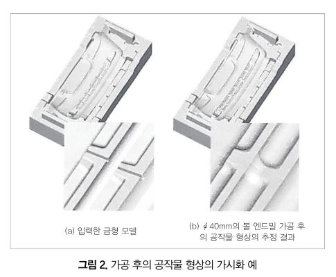 가공 후의 공작물 형상을 추정하기 위해서는 금형 형상과 공구 형상에 기초해 가공용 공구경로를 생성하고, 다음으로 그 경로를 이용해 가공 시뮬레이션을 실행해 공작물 형상의 입체 모델을 가공 후의 상태로 변형시키면 된다.