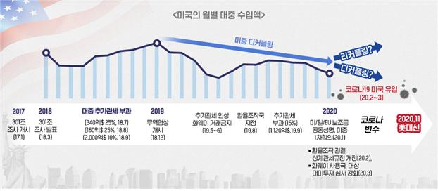 ▲ 미중 통상분쟁의 흐름과 코로나 사태 (자료 : 한국무역협회)