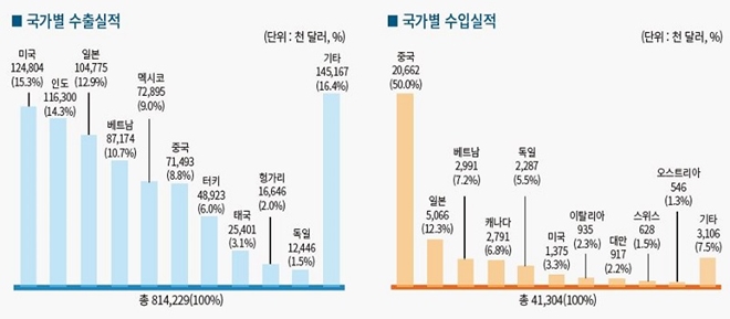 ▲국가별 수출실적 및 수입실적(사진 : 한국금형공업협동조합)
