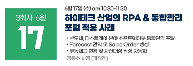 ▲ 6월 17일(수)에 열리는 웨비나에서는 하이테크 산업의 RPA 적용 사례를 다룰 예정이다.