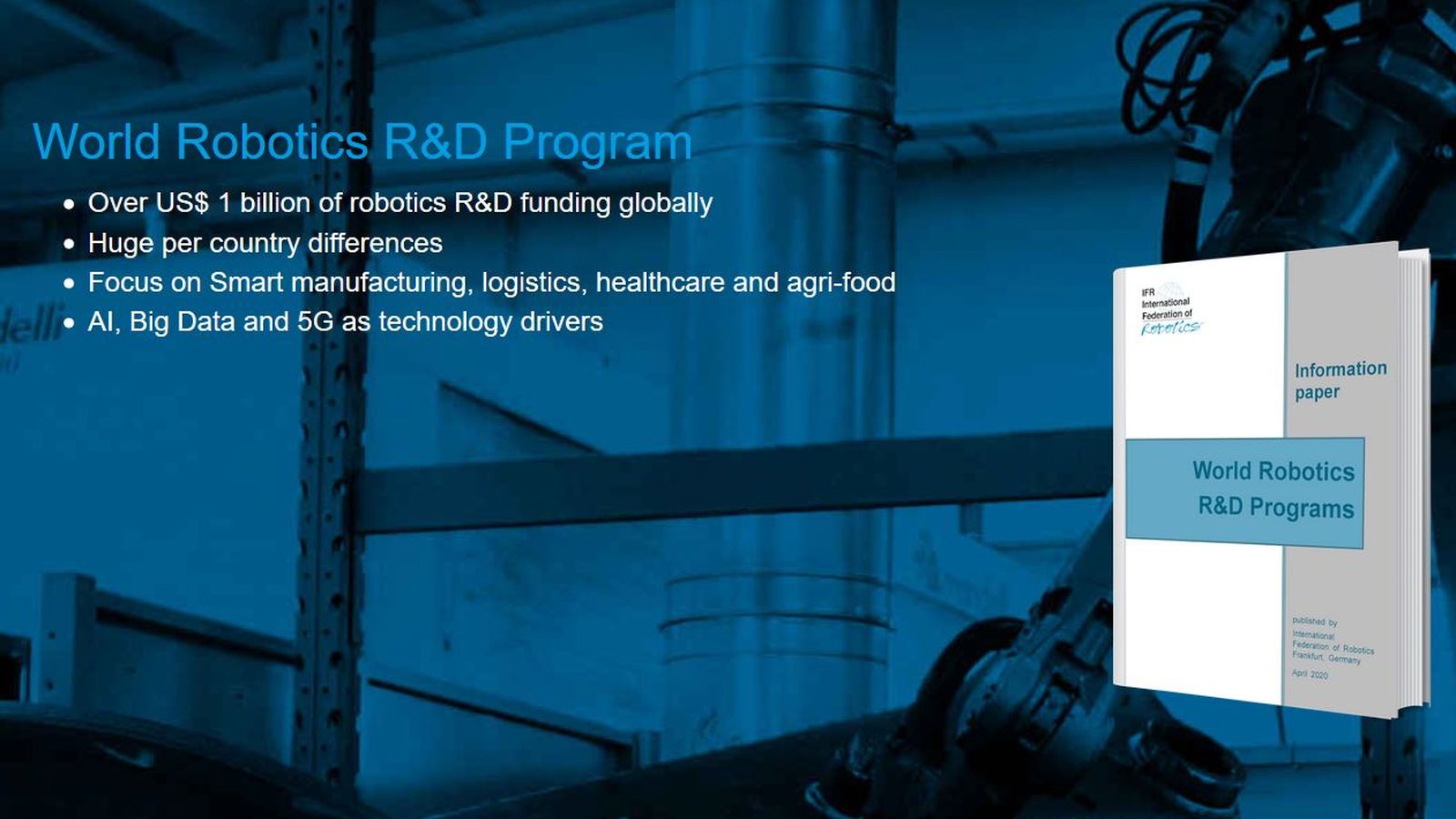 특히 R&D은 로봇의 개발을 한 걸음 더 뒷받침하는 데 매우 중요하다. 국제로봇연맹(International Federation of Robotics, 이하 IFR)은 새로 발간한 보고서 ‘세계 로봇 R&D 프로그램(World Robotics R&D Programs)’을 통해 국가별 연구 재정지원 프로그램을 정리했다.