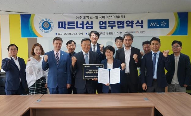 한국AVL은 6월 17일(수) 아주대학교 연암관에서 자율주행 모빌리티 기술 발전 및 인재 양성을 위해 아주대학교와 산학협력 업무 협약식을 가졌다.