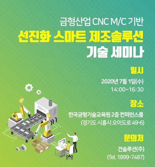 한국금형공업협동조합(이하 금형조합)이 오는 7월 1일(수) 우리 조합 금형기술교육원 2층 회의실에서 ‘금형산업 CNC M/C 기반 선진화 스마트 제조솔루션 기술 세미나’를 개최한다고 밝혔다.
