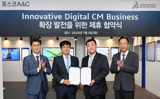 다쏘시스템이 종합건축서비스 기업인 포스코A&C와 디지털 건설사업관리 비즈니스 확장을 위한 업무협약(MOU)을 체결했다고 밝혔다.
