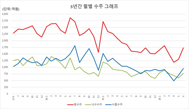 절망 속 희망이다. 5월에 이어 6월도 수주량 증가세를 보였다. 더욱이 두 자릿 수 증가다. 코로나19의 영향이 여전히 있지만 앞으로 시장 전망 신호는 파란불이다. 미국, 일본, 대만 모두 증가세를 기록했다. 내년 상반기에나 성장세로 돌아설 것이라고 했던 전문가들의 전망에 수정이 필요할 것으로 보인다.