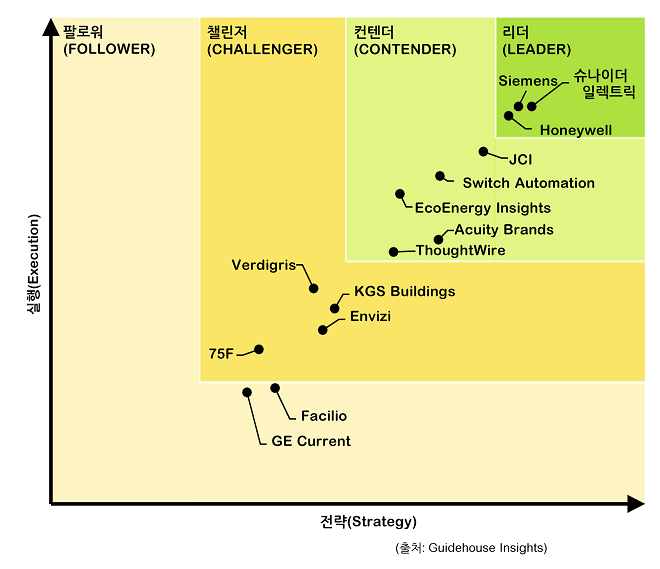 [헬로티 = 김동원 기자] 슈나이더일렉트릭(한국지사 대표 김경록)이 시장조사업체 가이드 하우스 인사이트 (Guidehouse Insight, 구 내비건트 리서치)가 주관하는 지능형 빌딩 관리 소프트웨어 기업 평가에서 1위를 차지했다.