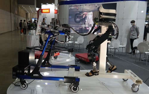 티로보틱스가 ‘2020 로보월드’에 참가해 보행보조로봇 ‘Healbot-T'와 ‘Healbot-G'를 선보였다.