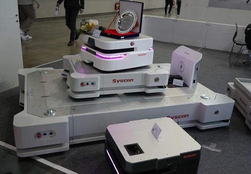 로봇 시스템과 자율주행로봇을 개발해 공급하고 있는 시스콘이 ‘2020 로보월드’에 참가해 물류 이송 로봇 ‘SR 시리즈'를 선보였다.