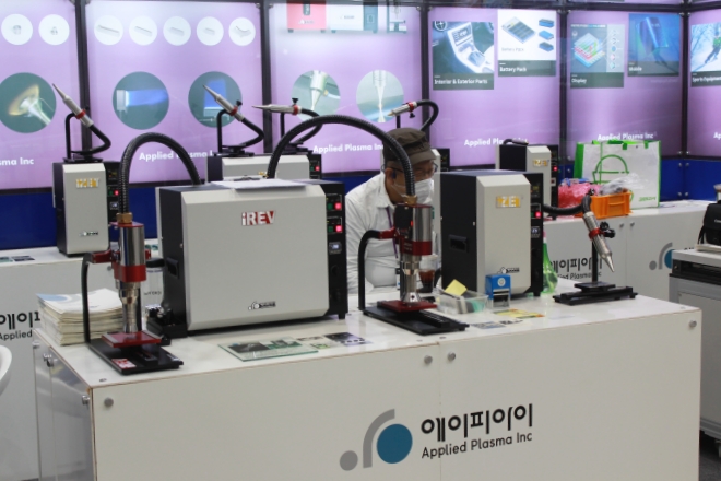 전시회에서 선보인 'iREV'는 산업 전반의 다양한 어플리케이션에서 제품 완성도를 높이는 초고속 대면적 저온 대기압 플라즈마 표면처리 장비다.
