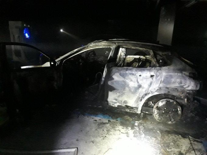 사진. 충전 중 화재로 타버린 코나 전기차 (출처: 연합뉴스)