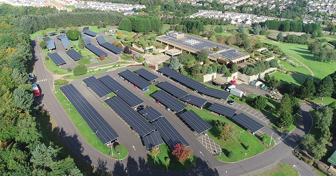 ▲한화큐셀 모듈이 설치된 아비바 스코틀랜드 퍼스 본부 주차장