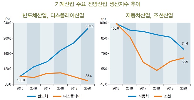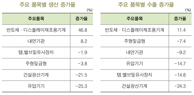 반면 수도권의 경우 반도체, 디스플레이 등 경박단소형 첨단산업이 높은 생산 증가세를 보이며 수도권 기계산업 성장에 기여하고 있다.