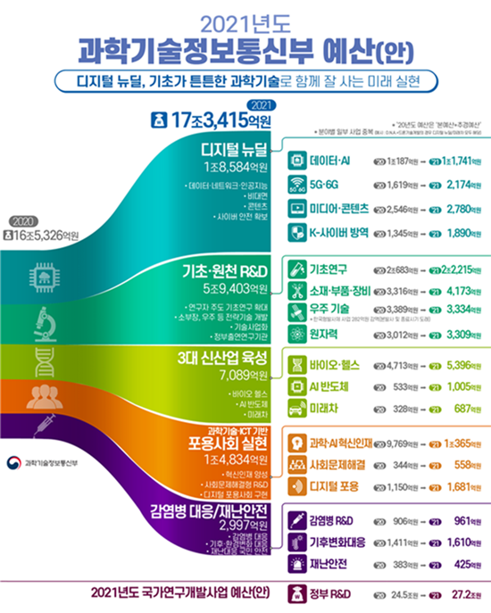 ▲2021년도 과학기술정보통신부 예산안 편성 (출처 : 과학기술정보통신부)