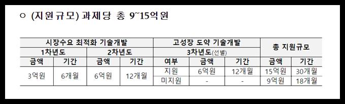 ▲공모를 통해 선발된 기업에게는 최대 3년 간 15억 원을 지급한다. (출처 : 과학기술정통부)