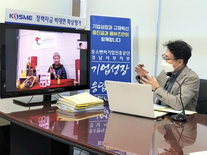 이날 평가는 중진공과 평가기업 회의실에서 화상 시스템을 활용해 진행됐다. 중진공은 기업이 온라인으로 제출한 기업자료를 바탕으로 평가를 했다. 평가에 참여한 임원숙 농업회사법인 거제동백연구소 대표는 화상으로 자사 제품의 시장성과 기술력을 설명했다.