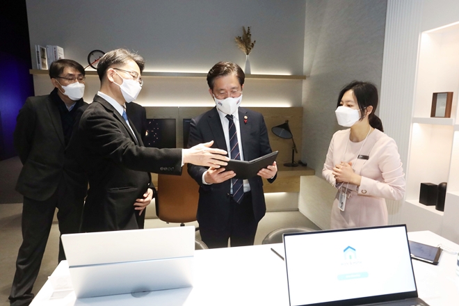 이날 성윤모 장관은 LG디스플레이 정호영 사장과 환담 후 LG디스플레이 전시관에 마련된 주요 체험존을 살펴보며 OLED를 중심으로 한 스마트홈, 게임 등 다양한 라이프스타일에 최적화된 디스플레이의 미래상을 직접 확인하고 관계자들을 격려했다.