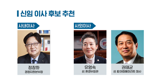 이날 추천된 후보들 및 ‘ESG 위원회’는 내달 12일 열리는 주주총회에서 이사로 선임 및 이사회 산하 정식 기구로 최종 확정된다.
