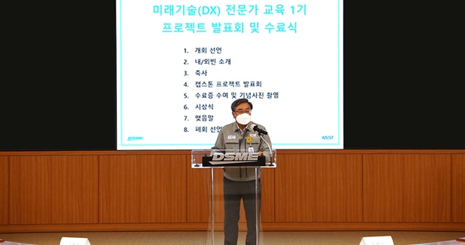 이성근 사장은 “급변하는 세계시장에서 AI, 빅데이터, 비대면 기술 등 미래기술의 도입 없이는 살아남기 힘들다”며, “수료한 40명의 전문가들이 주축이 돼 회사의 디지털 전환에 앞장서주길 바란다”고 당부했다.
