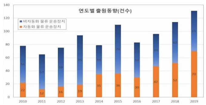 그림. 물류 공정을 자동화하기 위한 특허 출원 현황 (출처:특허청)