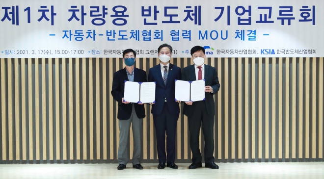 한국자동차협회와 한국반도체협회는 지난 3월 17일 국내 차량용반도체 산업 발전을 도모하기 위한 양해각서를 체결하고, 양 업계 간 비즈니스 협력을 위한 기업 교류회를 자동차회관에서 개최했다.