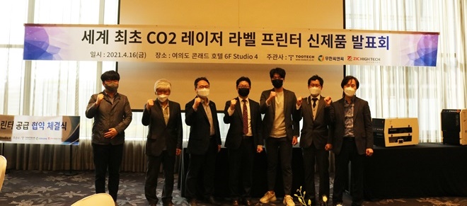 투테크(TOOTECH)는 4월 16일 여의도 콘래드 호텔에서 세계 최초 CO2 레이저 라벨 프린터 신제품을 발표했다. 행사에는 투테크와 협력사들이 참석했다.