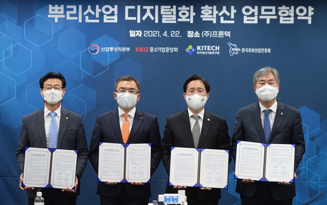이날 행사에는 중소기업중앙회 상근부회장과 금형, 단조, 용접, 열처리의 4개 뿌리조합 이사장 등 뿌리업계 대표, 생산기술연구원장, 프론텍 대표이사, 로봇산업진흥원장이 참석했으며, 실행계획 발표 후, 산업부-중기중앙회-생산기술연구원-로봇산업진흥원 간 뿌리산업 디지털화 확산을 위한 업무협약을 체결했다.