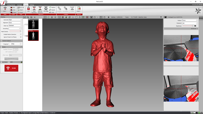최고 0.0067mm 간격의 고해상도의 폴리곤 데이터를 생성하며 전용 3D스캐닝 소프트웨어 FlexScan3D를 활용해 OBJ, PLY, STL과 같은 확장자의 3D메쉬 데이터로 출력한다.