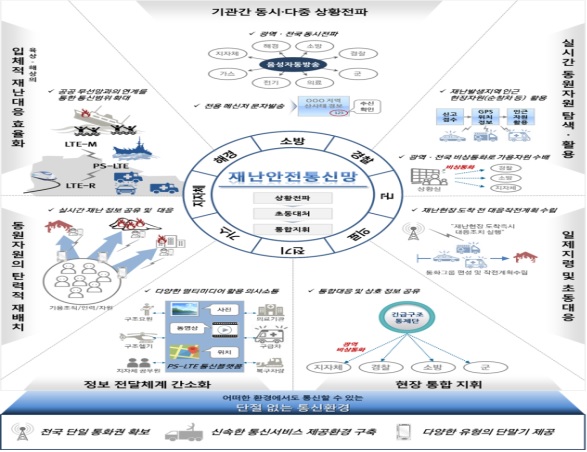 경찰·소방·해양경찰 등 재난 관련 기관이 하나의 통신망으로 소통하는 재난안전통신망이 전국적으로 가동된다. 4세대 무선통신기술(PS-LTE)을 기반으로 재난안전통신망을 구축한 것은 우리나라가 세계 최초다.
