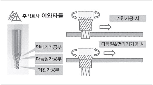 트라이엔지니어링은 이와타툴과 공동으로 포켓 가공용 복합 엔드밀(그림 5)을 전시회에 참고 출품해 알루미늄재의 데모 가공을 했다. 또한, 오에스지와는 로봇 전용 CFRP 가공용 엔드밀 개발 등을 추진하고 있다. 그 외에도 후지코시에서도 적극적인 대응 의사를 묻고 있다.