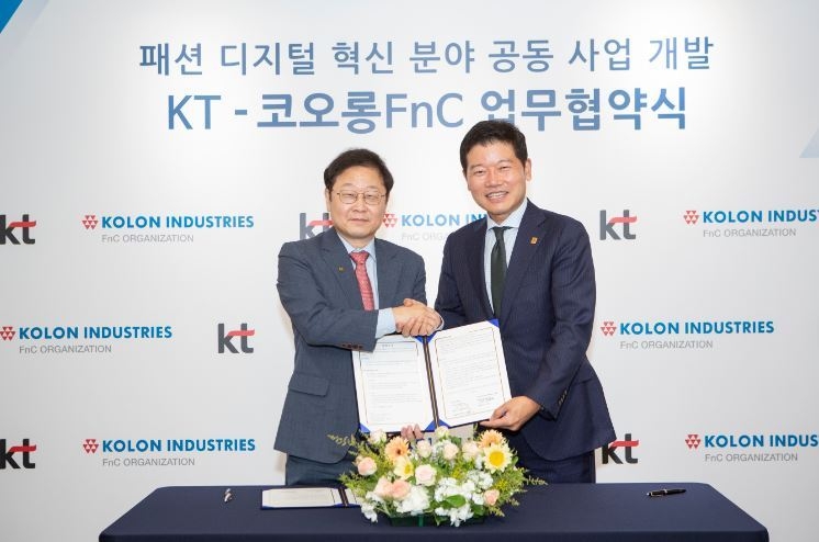 KT가 코오롱FnC와 패션 시장의 디지털전환(DX)과 ESG 신규 사업 협력을 함께 추진 한다고 7일 밝혔다. 양사는 6일 서울시 강남구 코오롱FnC 본사 사옥에서 이 같은 내용을 핵심으로 한 업무 협약(MOU)을 맺었다.