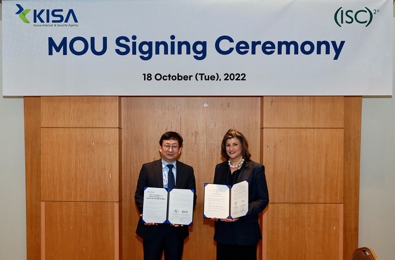 한국인터넷진흥원(KISA, 원장 이원태)은 국제정보시스템보안자격협회 ((ISC)², 회장 클레어 로소)가 글로벌 사이버보안 협력네트워크(CAMP)에서 발표한 ‘개도국 사이버보안 전문 교육 및 인력 양성 방안’에 대한 후속적인 협력으로 ‘사이버보안 인재양성 및 교육을 위한 MOU’를 서울 삼성동 코엑스에서 체결했다고 19일 밝혔다.