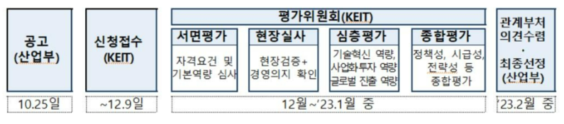 으뜸기업 선정은 오는 12월 9일까지 신청받은 뒤 서면-현장-심층-종합의 4단계 평가를 거친다. 선발된 기업은 기술 개발, 사업화, 글로벌 진출, 규제 특례의 4가지 단계로 밀착 지원을 받을 수 있다.