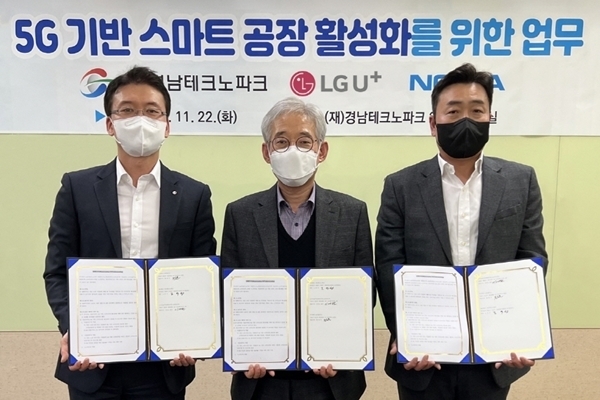 LG유플러스가 경남 지역 내 중소·중견기업 공장의 5G 기반 스마트 전환 및 디지털 혁신을 위해 경남테크노파크(이하 경남TP), 노키아솔루션앤네트웍스코리아(이하 노키아 코리아)와 업무협약을 체결했다고 28일 밝혔다.