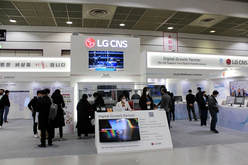 LG CNS는 이번 전시회에서 'Digital Growth Partner'라는 슬로건을 내걸고 기업의 디지털 전환을 지원하겠다는 목표를 밝혔다. 소개된 다양한 솔루션으로는 SaaS 통합 플랫폼 ‘싱글렉스(SINGLEX)’, 기업용 블록체인 플랫폼 '모나체인', AI를 통한 음성인식·문장분석 기술을 결합해 사람과 AI간 대화형 영어학습 'AI 튜터', 실거래 자동검증 솔루션 '퍼펙트윈' 등이 소개됐다.