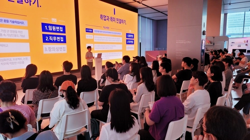 삼성 강남은 삼성전자 임직원이 직접 강연하는 특별한 사내진미 클래스를 운영 중이다. 지난 7월 15일에 진행한 첫 번째 강연은 ‘내가 좋아하는 것을 일과 연결하는 방법’이라는 주제로 삼성전자 직원이 현업에서의 생생한 경험담과 유용한 조언을 흥미진진하게 들려줬다. 클래스에 참석한 수강생은 “IT직군의 취준생으로서 삼성전자 직원의 생생한 직무 경험과 사내 문화를 들을 수 있었던 뜻 깊은 시간이었다”고 말했다.