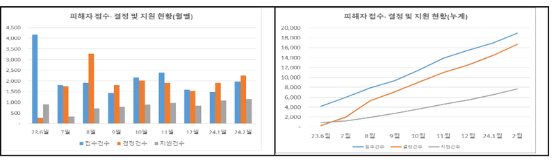 그간 위원회에서 최종 의결한 전세사기피해자등 가결 건은 총 14,001건(누계),긴급 경・공매 유예 협조 요청 가결 건은 총 795건(누계)으로, 결정된 피해자등에게는 주거, 금융, 법적 절차 등 총 7,688건(누계)을 지원하고 있다.