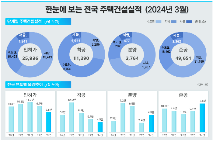 국토교통부는 24년 3월 기준 주택 통계를 발표하였다.
